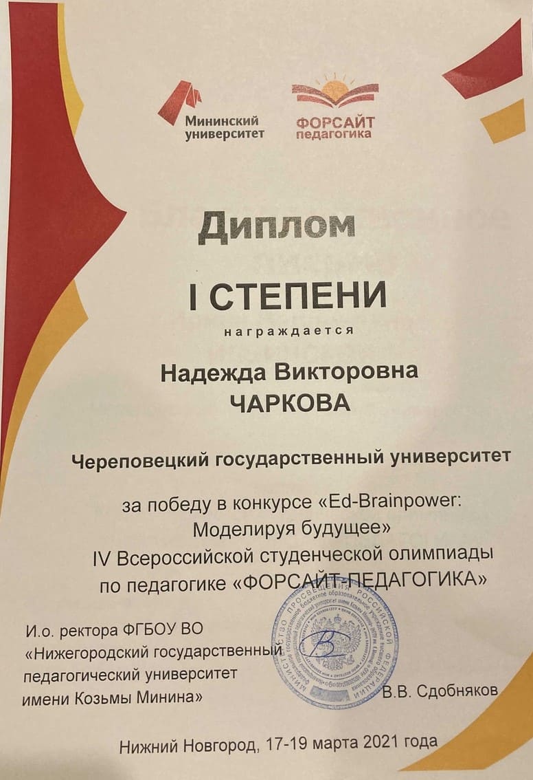 Успехи студентов ЧГУ на Всероссийской олимпиаде «ФОРСАЙТ-ПЕДАГОГИКА»