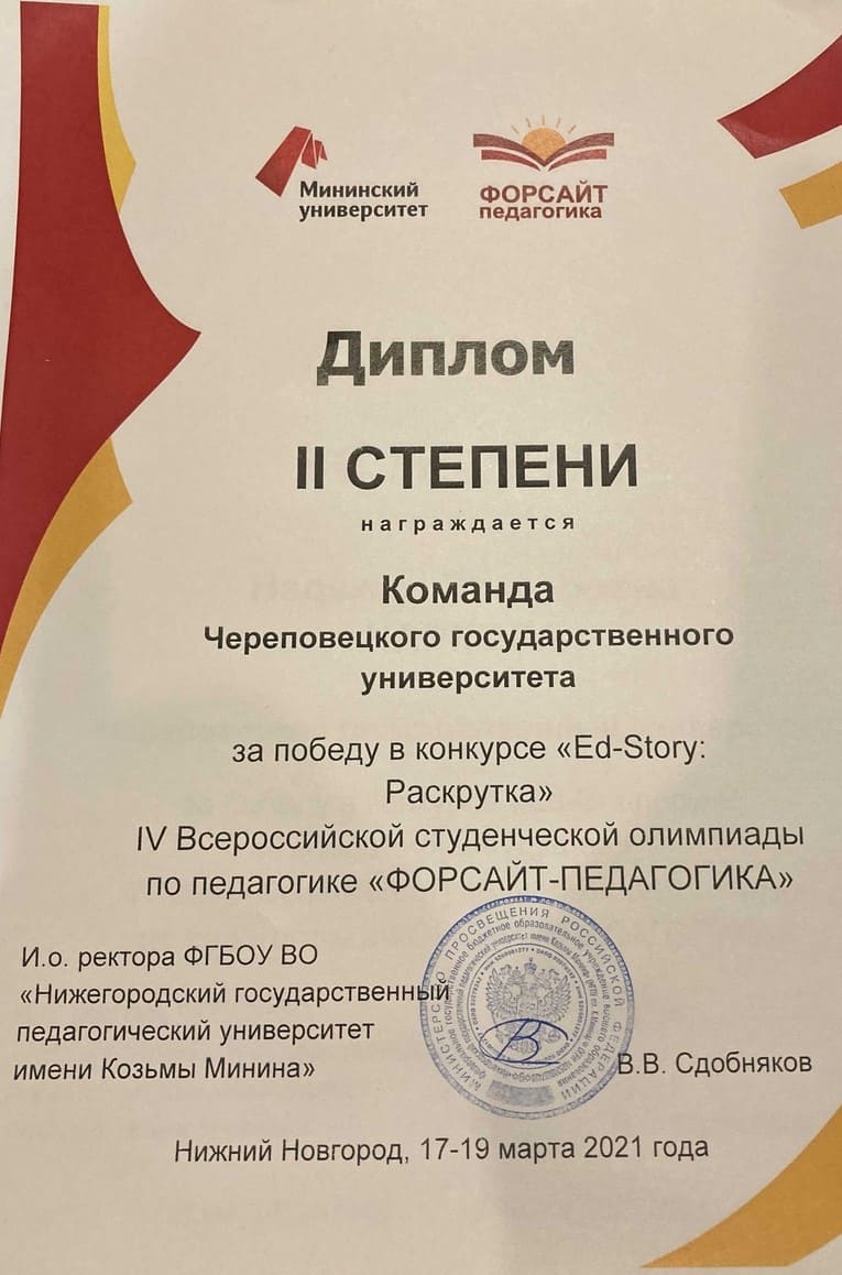 Студенты Череповецкого государственного университета приняли участие в IV Всероссийской студенческой олимпиаде по педагогике «ФОРСАЙТ-ПЕДАГОГИКА».