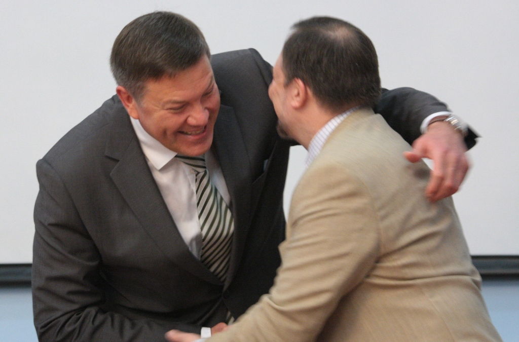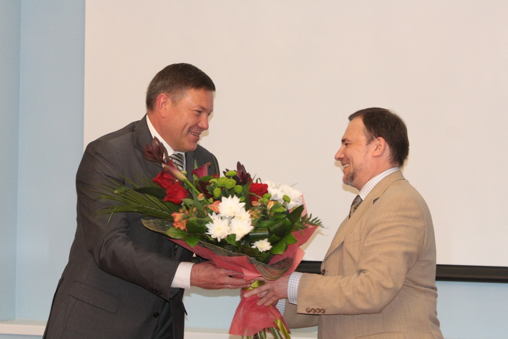 Однако начал свою работу попечительский совет с другого, не менее важного вопроса. Слово взял губернатор Вологодской области Олег Кувшинников. «У меня есть почетная миссия, возложенная министром образования и науки РФ. От его имени и, конечно, от себя лично, я хотел бы поздравить Дмитрия Владимировича с юбилеем. За значительный вклад в развитие университета, успехи в организации и совершенствовании образовательного процесса в свете современных достижений науки, техники и культуры, обеспечении единства обучения и воспитания, успехи в организации финансово-хозяйственной деятельности, развитии и укреплении материально-технической базы университетаДмитрию Владимировичу Афанасьеву присваивается почетное звание «Почетный работник высшего профессионального образования РФ». Хотел бы сказать, что тот жизненный путь, который прошел Дмитрий Владимирович, – уникален. Мы очень много лет отработали вместе в ОАО «Северсталь». Дмитрий Владимирович начинал начальником отдела социологических исследований и дошел до руководителя, основателя крупнейшего в стране корпоративного университета. В 2009 году Дмитрий Владимирович был избран ректором ведущего вуза Вологодской области.